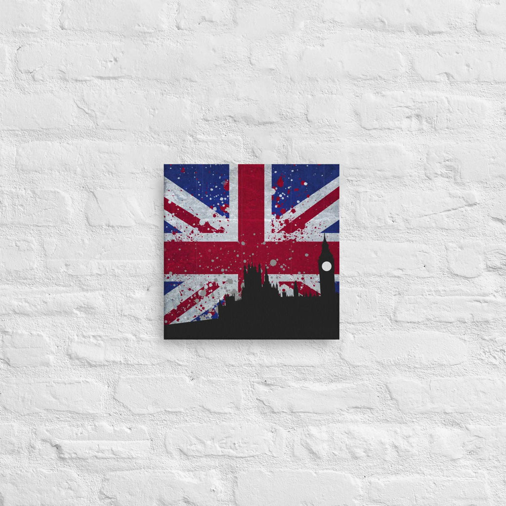 Unser London Union Jack Canvas verbindet die klassische Union Jack-Flagge mit einer Silhouette der Londoner Skyline, einschließlich des majestätischen Big Ben. Mit verwitterten Texturen und Farbspritzern ist es das perfekte Stück für jeden, der den Charme und die Energie der britischen Hauptstadt liebt.